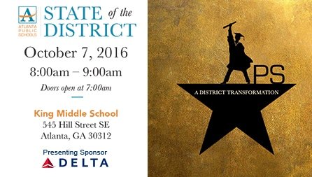 I am not throwing away my shot! I am not throwing away my shot! Hey yo, I’m just like my country I’m young, scrappy and hungry And I’m not throwing away my shot! – Alexander Hamilton in Hamilton Atlanta Public Schools is on a journey of transformation, and I am thrilled to invite every APS…